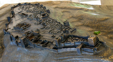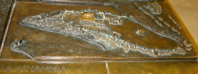 Our tour of the Alhambra was scheduled for late afternoon, which turned out to be a perfect time. First we paused to look at these bronze maps of the site as it was at its historical peak (above) and as it is today (below).