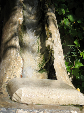 The Escalera del Agua (water staircase) whose handrail contains a ridged groove through which water flows and keeps up a refreshing sound in the garden of the Generalife.