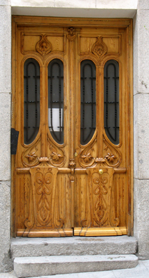 After several hours of browsing the galleries (it took us part of two days to tour the whole collection), we set out through a narrow pedestrian street in search of food. Restaurants open late, so we had our first tapas of many during the trip. On the way, we walked past his lovely carved art nouveau door.