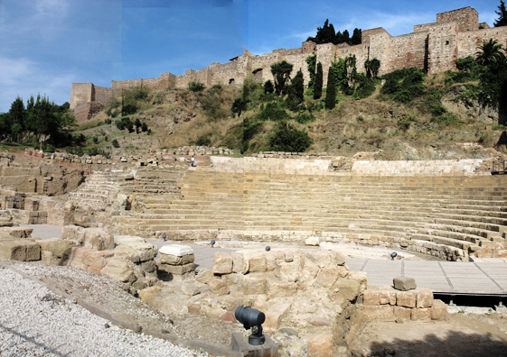 However, we also paid a brief visit to the Alcazaba (a Moorish castle) and the Roman theater excavated below it. Above, the view of the theater seats from behind the stage, with the walls of the Alcazaba rising on the hill behind it.