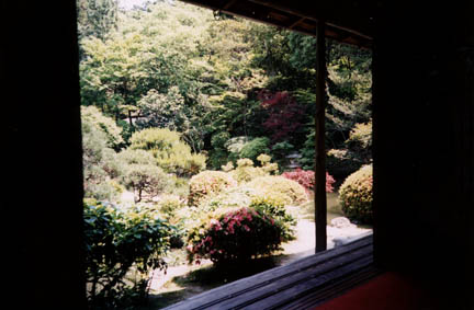 . . . and gaze at the fabulous gardens in front of you while you eat (and give directions to the occasional tourist who calls in from the garden across the rivulet outside: "How do you get in this restaurant?"). There is no glass separating you from the out of doors. The Japanese have traditionally prized this sort of direct link with nature.