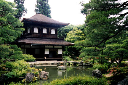 The Silver Pavlion (Ginkakuji) earns its name by being only slightly less magnificent than the more famous Golden Pavilion. It is not actually covered with silver (though that was once planned), but is another lovely aristocratic retreat. It was built in 1482 by Shogun Ashikaga Yoshimasa. Like most such buildings, it was later converted into a temple.
