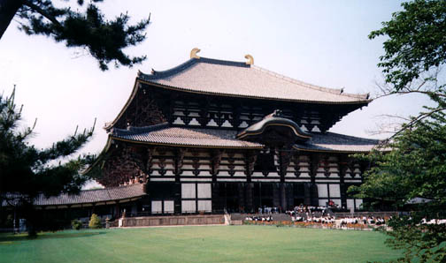 The Daibutsu Hall in the Todai-ji Temple complex in Nara is reputed to be the largest wooden building in the world. It was first built in 746 CE, later destroyed in a war, then rebuilt in 1709 to be somewhat less wide but as tall and as deep as it had been originally.