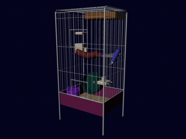 This was by far the most complex model I had to do for this video. The cage is an exact replica of the cage I have in my apartment. I think it turned out very well.