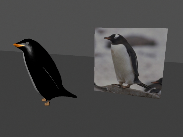 The model for the penguin is based off of the Adelie penguin. Nurbs surfaces were used to create the body of the bird. A separate model was then created to construct the wings. Both models (the wing and the bird) were converted to polygons.