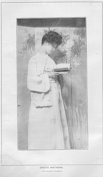Works A Japanese Blossom (1906)(Emory University Women's Genre Fiction Project) (Page images at Google Books) From "General Gossip of Authors and Writers," Current Literature (February 1902), p. 236: Unusual and very interesting has been the career of Onota [sic] Watanna, who in private is Mrs. B. W. Babcock. For one so young--she is but twenty-three--she has been more of a wanderer, and has seen more of the world than the usual person of twice her years. As is generally known, she is half Japanese, her father being an Englishman in the consular service, and her mother a full-blooded Japanese. Her parents were married according to the rites of the Christian church and are both still living. Onota Watanna was born in Japan, but was educated here and in England. She entered literature, as have many others, through the door of journalism. WHen but fifteen years of age she reported the debates of the letgislative council in Jamaica, West Indies, for a small local newspaper. She then came to this country and did work for the Cincinnati Commercial-Tribune. Her first Japanese story was published by that paper. She left Cincinnati and went to Chicago, and for four years wrote for papers and magazines. Her first magazine story came out in the Ladies' Home Journal; since then she has written for nearly all the large periodicals of the country. While in Chicago, she wrote her first book, Miss Numé of Japan. She has lived in New York but two years, during which time she has worked for Munsey's and has studied at Columbia University. Her beautiful story, A Japanese Nightingale, which came out last year, is of course her most important piece of work and her finest. It was this story which established her claim and suggested something of the strength and power and poetry which she possesses. THe book was really an achievement for one so young, and a vague analogy between it and her life, which the curious might care to draw, gives it additional interest. |