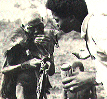 | Lolim used to confer with Joseph Towles as one doctor confers with another, He carries his divining sandals, and wears his baboonskin cape, a symbol of his high office. But no amount of doctoring could cure the basic ill, and Lolim died. |