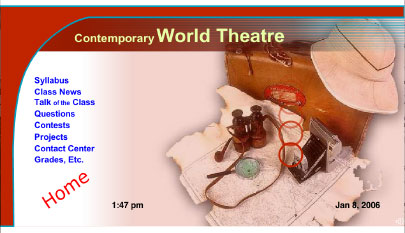 The heart and soul of Virtual World Theatre is the Talk of the Class Project. The intent of this project is to encourage you to talk to each other both BEFORE and AFTER a play is formally discussed in class. Talking" means posting public notes to each other on a state-of-the-art, interactive message board. You type directly onto the web page, and with a single press of a button, your note immediately appears for all to see who are currently viewing the page.
