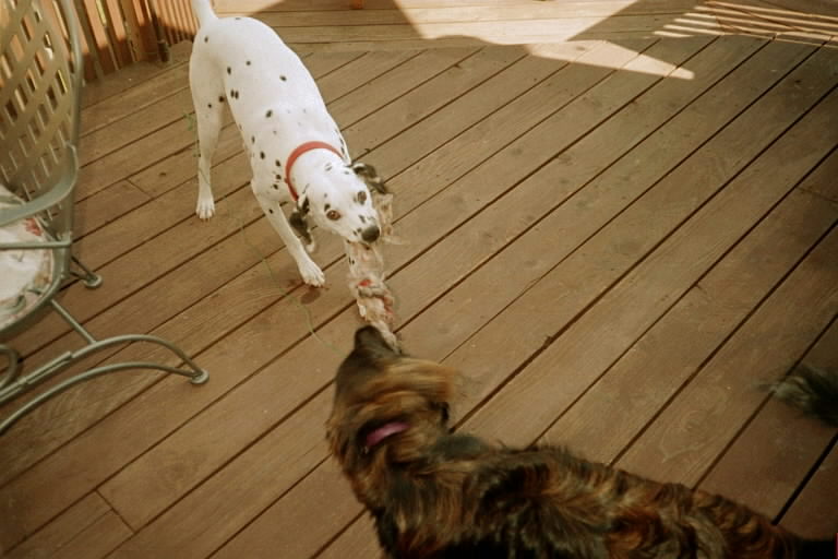 Hey, you two. Someone's going to get hurt with all that roughhousing.