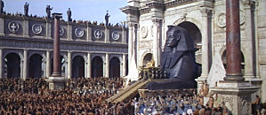 The first word is "Nay": a negation, or denouncement, or defiance. A soldier, Philo, is denigrating his general, Mark Antony, as a once-great warrior, "but this dotage ... / O'erflows the measure" (I.i.1-2), and from the start we have the theme of excess. Addicted to life with Cleopatra recently, Antony seems, to the soldiers, reduced to a gigolo: "his captain's heart ... become the bellows and the fan / To cool a gipsy's lust" (I.i.6-10), "The triple pillar of the world transform'd / Into a strumpet's fool" (I.i.12-13). This opening perspective is not privileged, however; disapproval is cast by many knaves in this play. Philo's line, "Behold and see" (I.i.13), haughtily cues what seems a show.