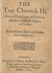 Although the earliest surviving editions of the anonymous King Leir date from 1605, the play has an older heritage. Philip Henslowe, who kept a daily diary of plays performed in his Rose Playhouse, received receipts for a kinge leare on 6 April 1594. That play was performed again two days later 'by the Quenes men and my lord of Sussexe to geather', and licensed for publication in the same year: Stationers' Company Record of May 14 1594 allows one Edward White the right to publish 'a booke entituled The moste famous Chronicle historye of Leire kinge of England and his Three Daughters'. The problem is that no copies exist from 1594: either none has survived or, as seems likely, Leir was not in fact printed then for some reason. But the result is that we cannot be certain whether the text published in 1605 is that of the earlier Leir, or a newly revised edition, or possibly of a different play altogether....