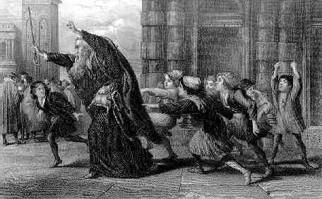 Salerio and Solanio have a laugh about Shylock wandering the streets on the verge of madness crying, according to Solanio, "My daughter! O my ducats! O my daughter!" (I.viii.15). This is always taken to mean that Shylock's avarice blurs the distinctions between the two in his mind. Additionally, the boys of Venice followed Shylock about, also mocking him. There's also a report of a ship sunk, seemingly one of Antonio's.