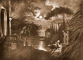 "Endymion, in the Greek myths, was a handsome prince who, asleep in a cave one night, was spied by Selene, goddess of the moon. Ravished by his beauty, she descended to the cave and kissed the sleeping youth. She wanted no more and, throwing him into a magic, eternal slumber, she returned night after night to kiss him and sleep awhile by his side" (Asimov 542). Lorenzo looks at the night sky and perceives "gold" (V.i.59). Musicians play and Jessica confesses, "I am never merry when I hear sweet music" (V.i.69), prompting Lorenzo to speechify about the special powers of music, which owes something to Count Lewis' discourse in "praise of Musicke" in Castiglione's The Courtier (Ogburn and Ogburn 67, 246-247).The chat is all very romantic on the surface, but Lorenzo is talking about music's power to distort nature! I think he's talking about Muzak here -- easy-listening yuppie music that suggests that everything is serene. "Mark the music" (V.i.88) -- the standard imperative mode a la "Shake your booty," "Play that funky music," "Let the music take control," "Do it 'til you're satisfied," etc., only in this case slow-tempo lulling music to re-brainwash by. Still, these discussions on music have frequently been referred to as pointing towards the Earl of Oxford and his musical expertise (Clark 341).