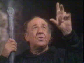 Ariel goes off invisible, Prospero awakens Miranda, and he calls Caliban, the late witch's savage monster-son (and near-anagram of "cannibal," probably inspired by the oft-anthologized Montaigne essay). "There's wood enough within" (I.ii.314) is Caliban's belligerent response. This play is a favorite for the application of postcolonial theory, and although there is truth in the reading of the play as showing "the totally irreconcilable situation that arises when civilizations clash" (Wells 365), Caliban is, after all, vile and reprehensible, a failure of the notion of the "noble savage." "Caliban has a legitimate pathos, but he cannot be interpreted as being somehow admirable" (Bloom 665). Prospero says he was "got by the devil himself / Upon thy wicked dam" (I.ii.319-320). Caliban makes his complaint about losing the island that is rightfully his as an inheritance from his witch mother, the devil's trollop: "This island's mine by Sycorax my mother, / Which thou tak'st from me" (I.ii.331-332). And he whimpers about the old days when in exchange for showing Prospero the island he was treated with "Water with berries in't" (I.ii.334) -- wine? Prospero reminds him that he tried to rape Miranda, and Caliban nastily pronounces, "O ho, O ho, would't had been done! / Thou didst prevent me; I had peopled else / This isle with Calibans" (I.ii.349-351). Caliban boasts: "You taught me language, and my profit on't / Is, I know how to curse. The red-plague rid you / For learning me your language!" (I.ii.363-365). But threatened by magic pain, cramps, and aches (I.ii.369f), Caliban retreats subdued.