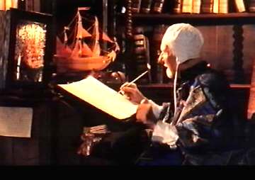 | In this play, the younger generation is uncontaminated by the world, not unacquainted with it (Goddard, II 290), although Miranda acknowledges that she has never seen any women and only her father and Ferdinand, but that she cannot imagine any man more glorious than Ferdinand. She offers to be his wife -- "I am your wife, if you will marry me; / If not, I'll die your maid" (III.i.83-84) -- and they pledge themselves to each other, Ferdinand "thus humble ever" (III.i.87). They are willing to be each other's slaves. It all happens fast, but Miranda is acting without artifice. Prospero is delighted for them. "I'll to my book, / For yet ere supper-time must I perform / Much business appertaining" (III.i.94-96). |
