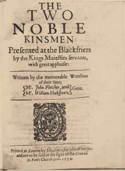 This is one of the apocryphal plays, although the Stationers' Register notes joint authorship: Shakespeare and John Fletcher. "There is no good reason to doubt this ascription: many plays of the time did not appear in print until long after they were written," says Stanley Wells (381), blind to the irony about the dating of Shakespeare plays. Three plays are now considered Shakespeare/Fletcher joint projects: this one, the lost Cardenio, and Henry VIII -- only this last included in the First Folio perhaps to round out the Histories sequence.