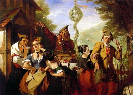 In this country setting appears a stage gypsy or rogue, singing a bawdy