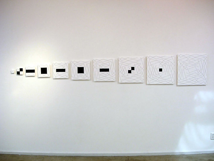 Chris Watts, Ten Pannels Interlocking Spirals, acrylic on wood, 2011
