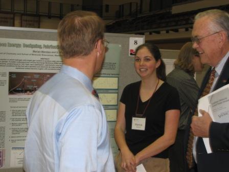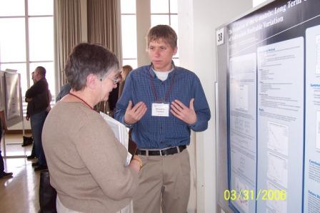 Benjamin Logsdon and CarolynSmith A total of 15 Honors College students participated in the College of Science Poster Competition on Friday, March 31, 2006. First place prizes of $400 were given in three categories – Biological Sciences, Physical Sciences, and Interdisciplinary/Mathematics. Sheila Doyle won 1st place in Biological Sciences for her research entitled “Sex Ratio Selection in Precocial Waterfowl, the Ruddy Duck.” Benjamin Logsdon won 1st place in the Interdisciplinary/Mathematics category for his work entitled “Monte Carlo Simulation of the Distribution of Variation of the G-matrix at Mutation-Drift Equilibrium.” Gretchen Dole won the Novice Research Award in Biological Sciences and a prize of $100. Other Honors College participants included Ryuji Imoto, Brenda Kroft, Stephanie Tintinger, Chris Bates, Marian Marston, Ethan Smith, Jonathan Leiner, Sonja Weiss, Neil Trotman, Divesh Aidasani, Christopher Bemis, and Kelsey Wertzler. Congratulations to you all!!
