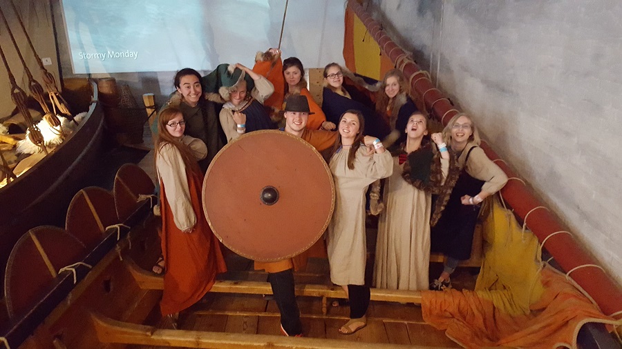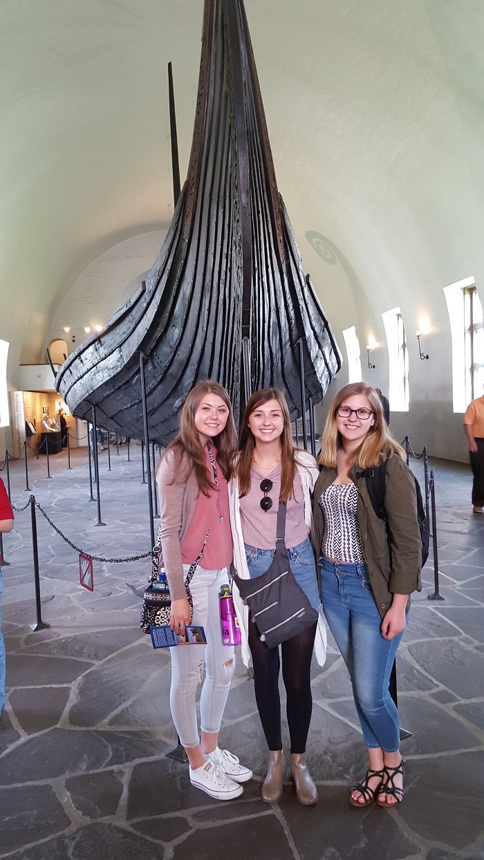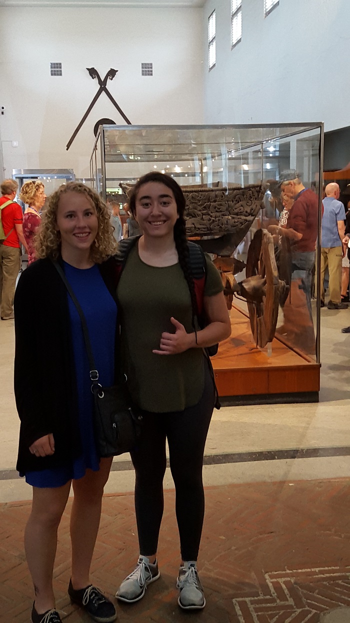 Grace and Lauren by Viking artefacts, Viking Ship Museum, Oslo.
