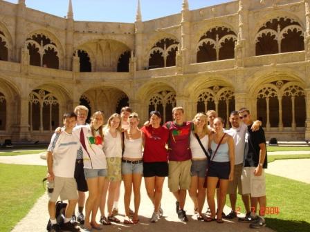 Jon, Kim, Katie, Kathryn, Peter, Katie, Stacy, Tyler, Sarah, Travis, Marcie, Norberto, Johannes at Jeronimos Monestary, Lisbon.