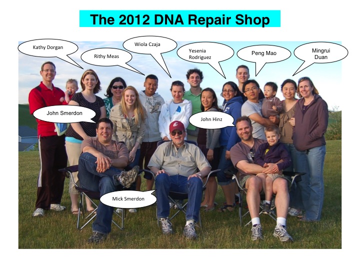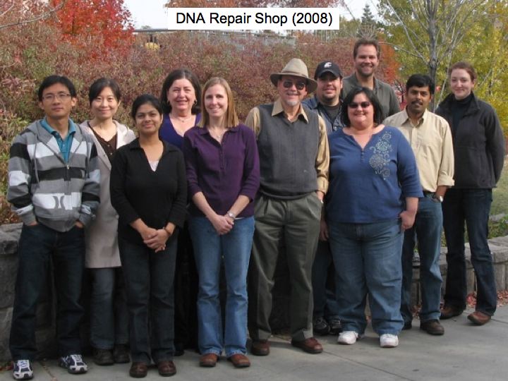DNA Repair Shop 2008: (L - R) Peng Mao, Mingrui Duan, Ronita Nag, Diane Smerdon, Angie Hinz, Mick Smerdon, John Smerdon, Anamaria Zavala, John Hinz, Shubho Chaudhuri, and Lauren Eberhart |